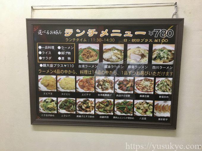 780円(日祝は+100円)で、ラーメンと一品料理が選べます。