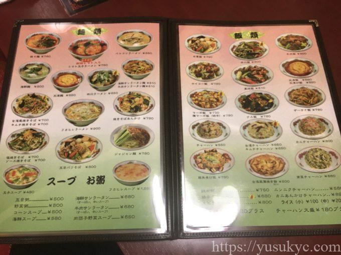盛華のメニューはよくある中華料理屋さんのメニューではありますが、種類が豊富です。