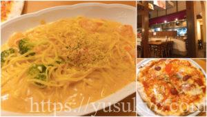 食事はランチからディナーまで楽しめるお店で、パスタ以外にもチーズフォンデュなども楽しめます。