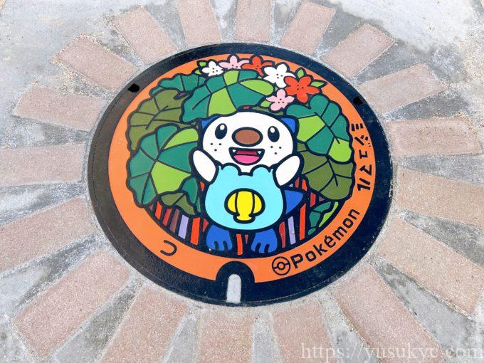 津市に設置されたポケふたは、みえ応援ポケモンに選ばれたミジュマルが描かれています。